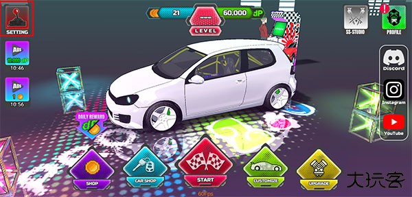 1、打开项目漂移游戏,点击左上角“setting”;