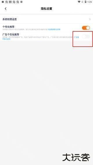 在弹出来的界面中,关闭广告个性化推荐右侧开关即可。