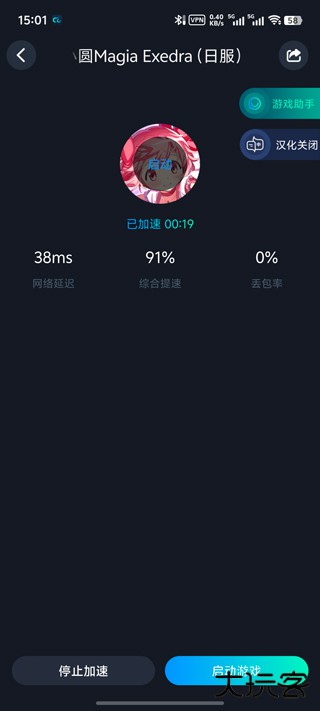 1、首先在本站下载安装魔法少女小圆Magia Exedra日服,安装完成后打开手游加速器(如CC加速器、奇游手游加速器),找到这个游戏,点击加速;