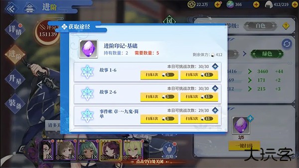 在进阶材料不足时,可通过点击材料并使用一件扫荡快速进行获取。同时,体力值的管理也至关重要,应合理分配于主线推图和武将进阶之间。