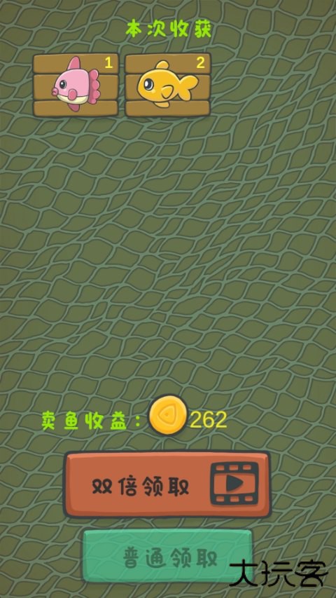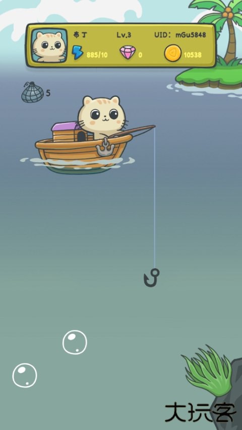 4、鱼钩会自动收回钓上来的鱼,捕获的鱼可置换为金币