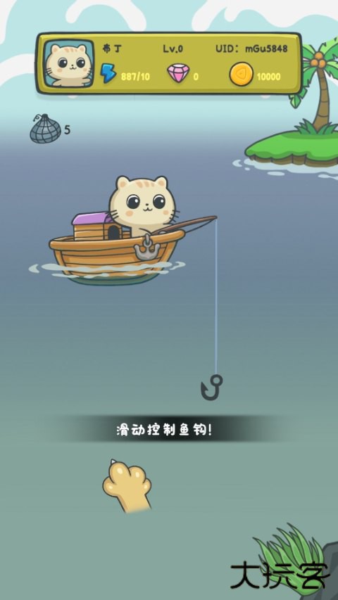 2、在钓鱼界面,轻轻点击屏幕,猫咪就会将鱼钩抛入水中。