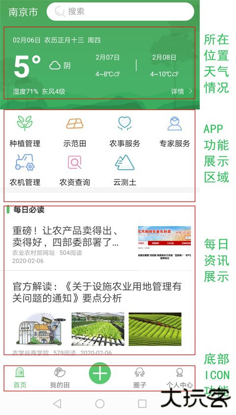 3、登录完成后即可进入慧种田首页,如下图显示其主要功能分布。