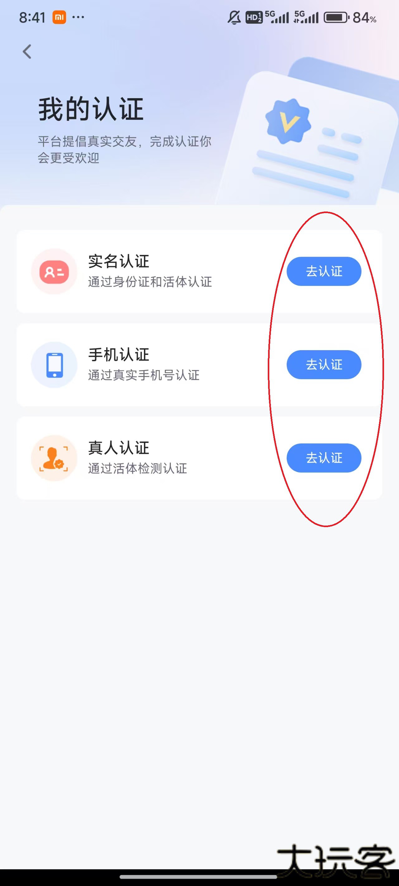 3、一共有三种认证方式,点击对应右侧的“去认证”。