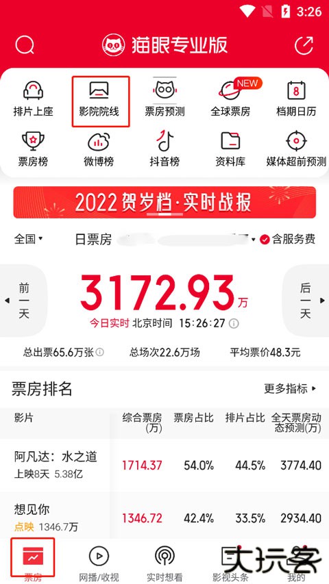 1、进入软件,在票房中,选择影院院线;