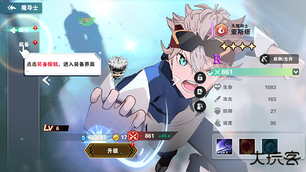 5、最后,获得的经验和装备都可以用来提升角色强度。