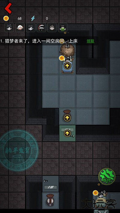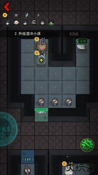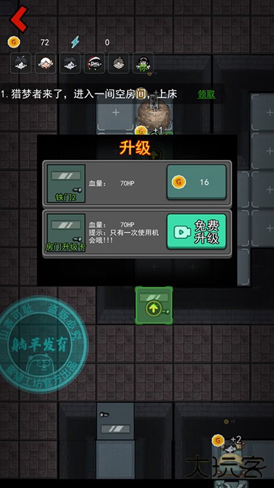 4、开局先升级门,然后建造炮台,其次升级床铺,床铺的等级决定你游戏的成败。