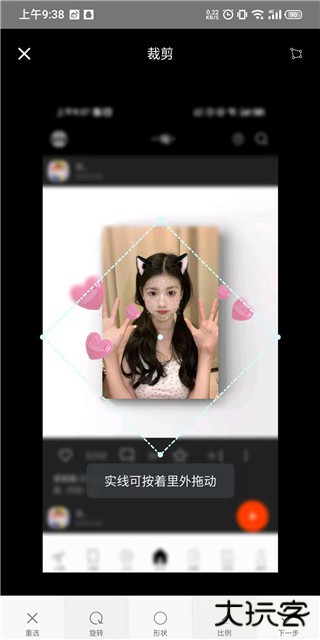 如果照片需要裁剪,可以自由选择需要的部分,或使用“比例”功能进行等比裁剪。