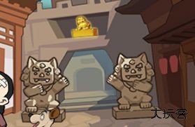 点狮子,第一次点第二个,然后在穿越点第一个出来个儿子把它们的儿子拿走 再次穿越点狮子第三个然后出现