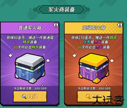 PS:宝箱品质越高,可获得的生存装备品质越高,关卡越往后,获得高品质宝箱的概率越高。