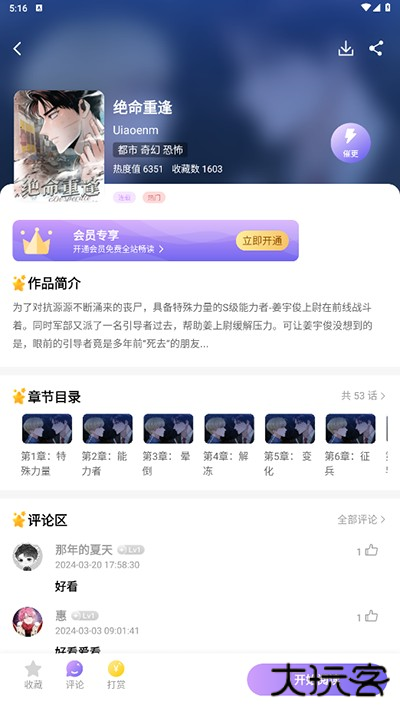 一键缓存、弹幕加持、给作者鸡腿~~漫画强大功能为你定制;