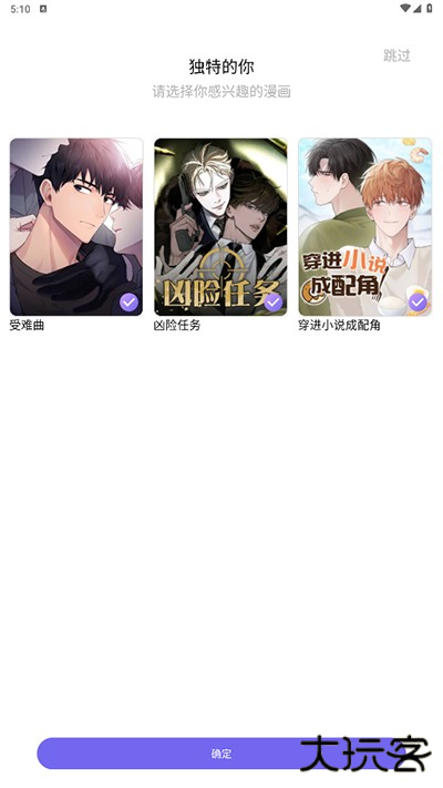 2、接着选择感兴趣的漫画类型,也可以跳过;