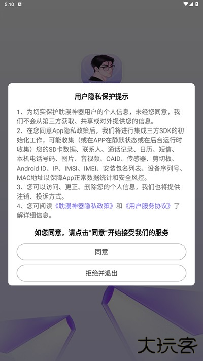 1、在本站下载后打开进入软件,点击同意并接受相关隐私服务;