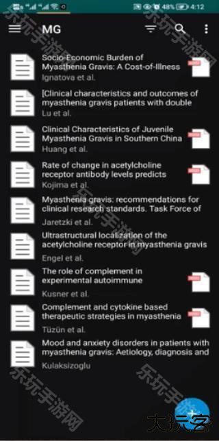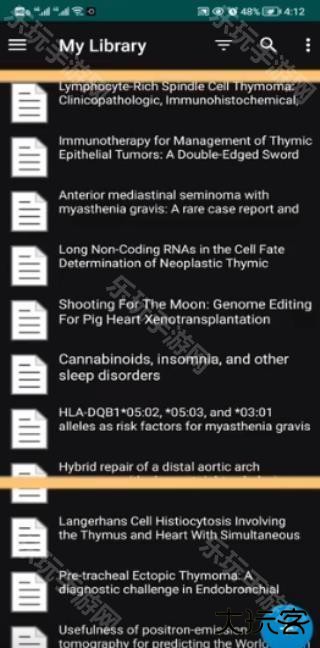 1、打开app后可建文献库中的所有文献,文献以标题形式显示,包含附件的会有PDF标志;