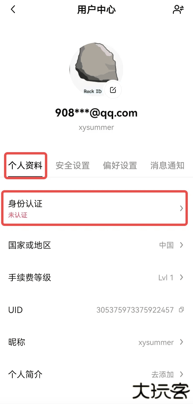 登录账号后,点击左上角个人中心图标--【个资料和设置】--【个人资料】--【身份认证】,进入身份认证页面。如果未完成认证,请点击【立即认证】,您需要上传证件照,如身份证的正反面,并通过人脸识别,根据页面提示完成证件上传和实人认证。