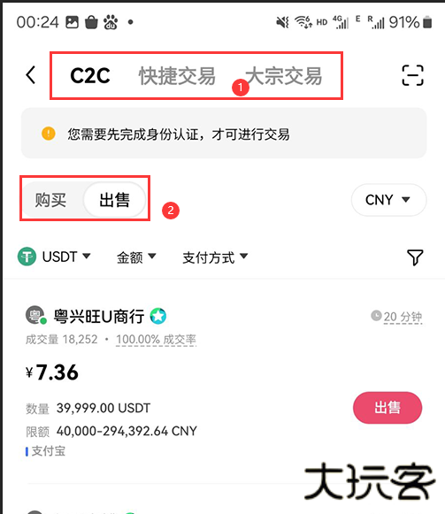 2.找到 C2C交易 点击进入就可以看到 快捷交易 大宗买卖 下面有购买 出售根据要求填入即可。
