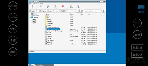 1、进入模拟器后找到C盘-game-game-Program Files (x86)-pvz-Weihua,找到PlantsVsZombies.exe启动游戏