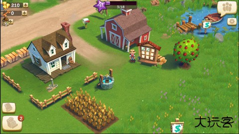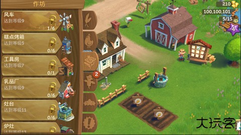 不论是农场场地还是各种各种作物、作坊,都需要农场达到一定的等级才能解锁,因此要发展壮大,生产和销售是关键。只有把产品卖出了才能增加经验值,才能升级解锁。