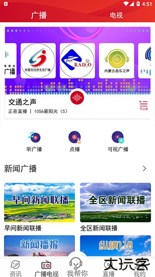2、点击广播电视,即可查看最新的内蒙古各种广播及电视,还可以点播各种你喜欢的内容;