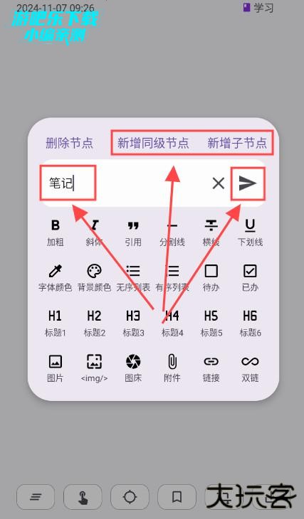 4、修改界面可以新增同级节点和子节点,这样就能扩展导图项目了。