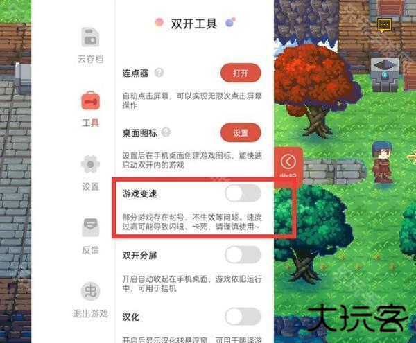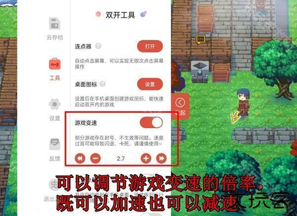点击【悬浮窗】-【工具】-【游戏变速】,打开后可以调节游戏的速度,可以让人物走得更快,减少跑图、刷怪的时间了!