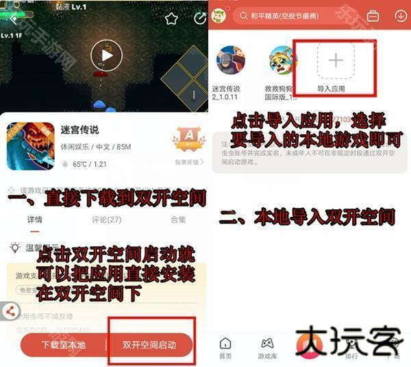 在游戏详情页点击双开空间启动就可以把应用安装在双开空间下