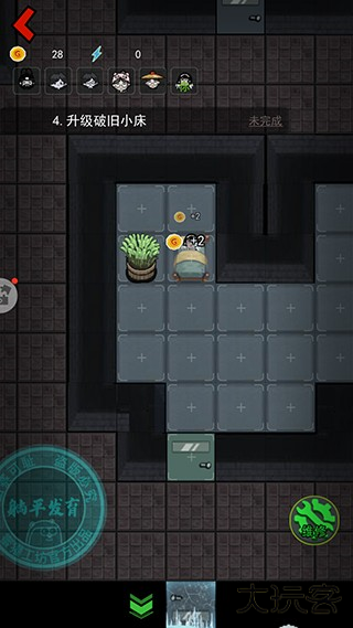先提升床的等级和建造两个炮台,因为这个时候猛鬼还没有到来,所以优先提升床铺的等级快速获取金币;然后再去提升门的等级,之后床铺的等级可以暂停一下,优先提升门的等级,否则很容易被猛鬼突破,提升到需要电力的时候再去商店购买游戏机,否则会很容易被猛鬼突破。