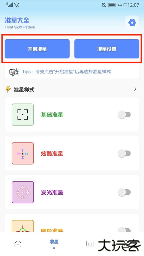 3、在准星界面,用户可根据喜好和习惯选择准星样式并进行设置,可以提高游戏中的命中率。