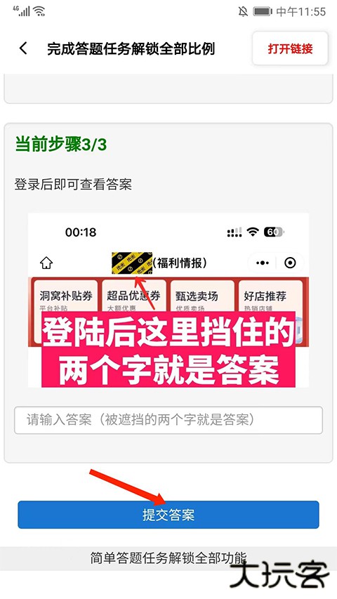 4、跟着步骤操作后,在输入框输入应该的答案后,点击下方【提交答案】就可以解锁了。