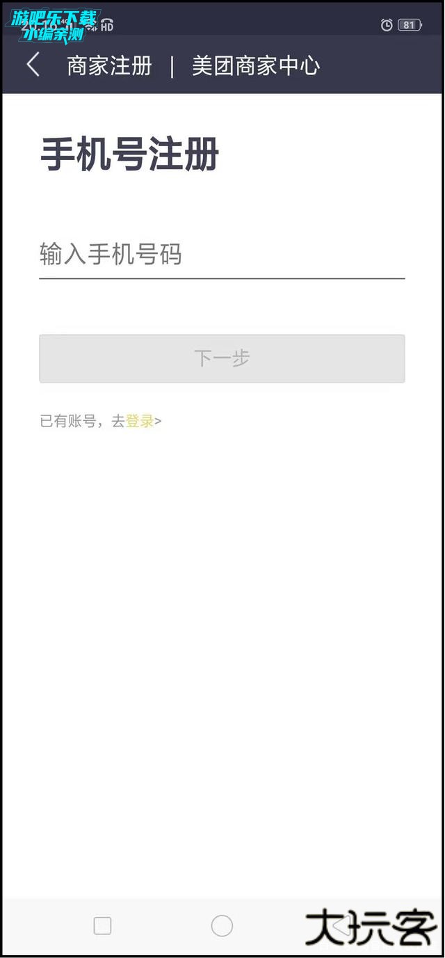 进入商家注册界面,填写您的手机号后点击“下一步”按钮,如图3所示。此时将收到验证码,填写完之后点击“确认”按钮。