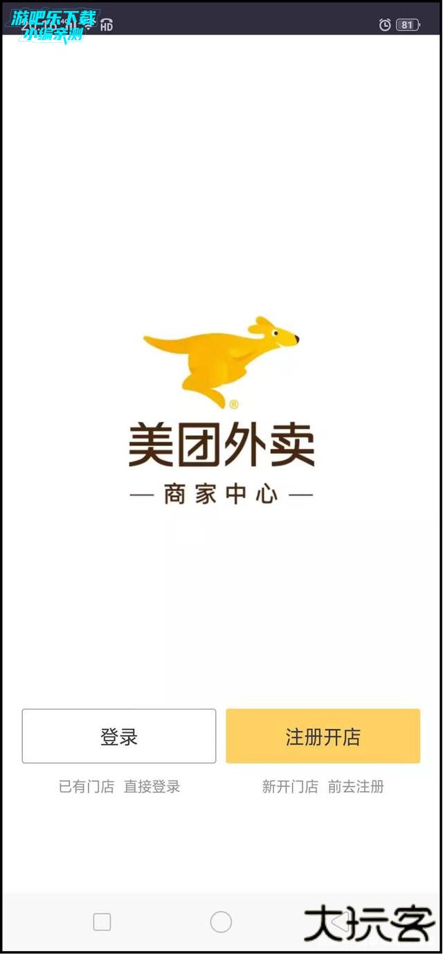 ②打开美团外卖商家版App,点击右下角“注册开店”按钮,如图2所示。