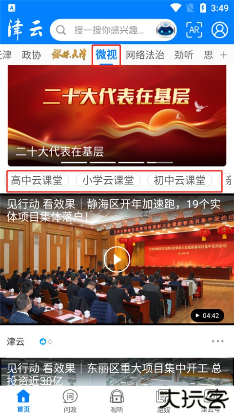 1、点击进入软件,在首页中选择微视选项,然后在小分类中往后拖拉,里面提供小初高云课堂,根据自己的年龄段,现在其中的云课堂;