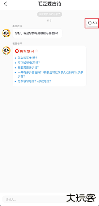 一、打开毛豆爱古诗app,点击右上角的客服中心