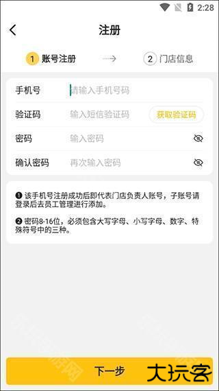 2、这里分为两步,账号注册和门店信息。