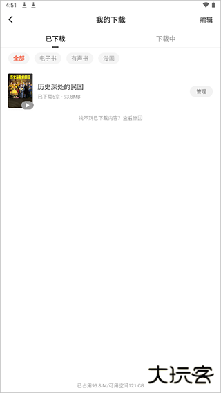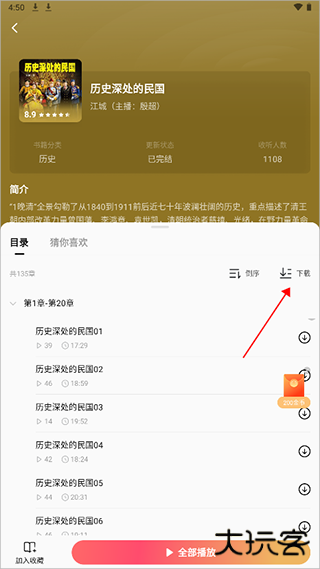 目前应用中的视频资源无法下载,但是听书资源和小说资源已开放了下载渠道,用户可以进入这些页面中选择需要下载的资源点击