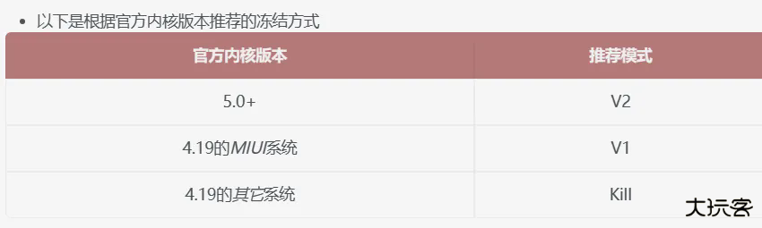 freeze版本,因此Hook获取系统是否支持挂起缓存以确定V2,其余为V1。如果测试失败或出现冻结错误,请选择kill模式。配置方法如下: