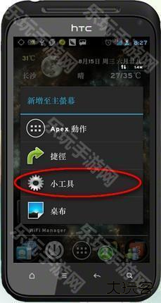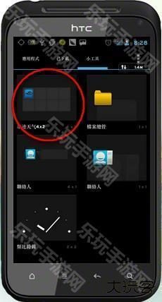 7、上面的步骤都完成之后,还没完成,现在回到手机主界面,打开手机的小工具选项,里面是有所有可以显示桌面小工具选项。