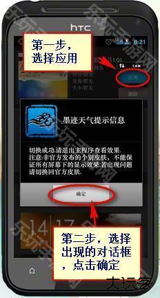 6、点击想要显示的皮肤之后,第一步选择应用,在选择确定。