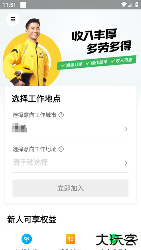 2、认证成功后,就可以选择想要兼职的工作地点,这将是你以后跑单的常用地址,附近派单的话就会分发给你了。
