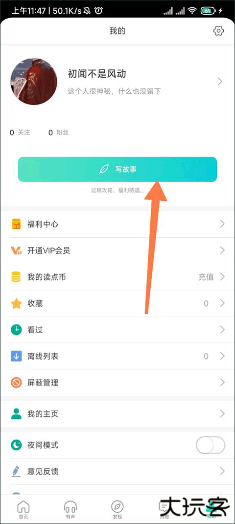 打开安卓版每天读点故事APP的个人中心,点击开通VIP会员。