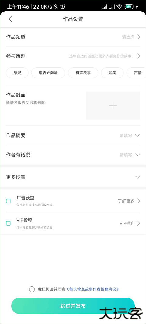 5、然后再对作品设置进行一些调整点击发布就可以了。