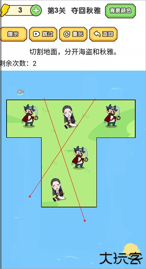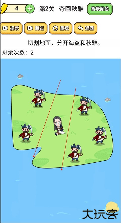 第三关、画一个x形状的线,将两边的秋雅都救出来,不要只救一个人哦。
