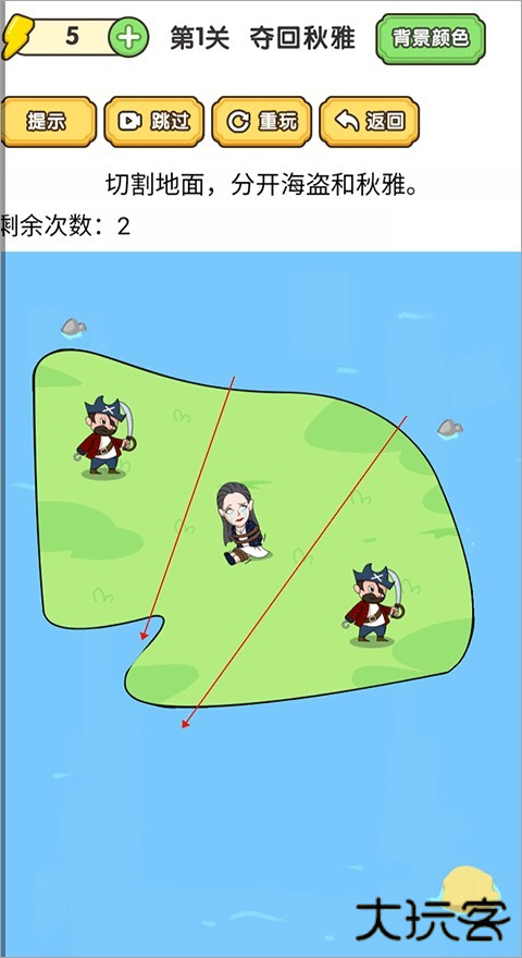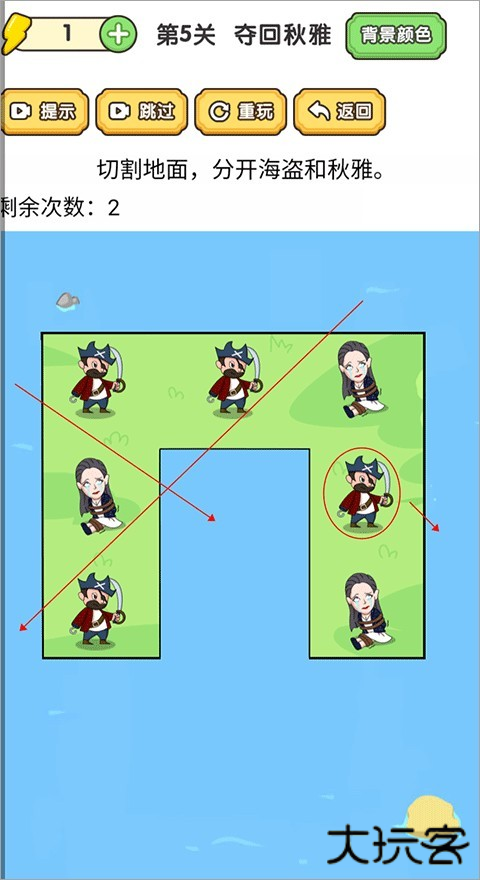 第五关、把右下方的土匪扔进去,再交叉画线就通关啦。