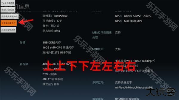 4、在下图界面中,用遥控器依次点击:上上下下左左右右,打开【快速演示模式】。