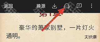 2、进入阅读页面,点击屏幕,会弹出选框,点选顶部的耳机状的按钮进入听书模式;