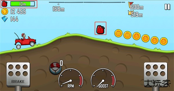 6、游戏中玩家需要拾取汽油来进行移动,当游戏左上角的油箱耗尽游戏就会结束;