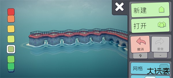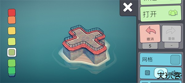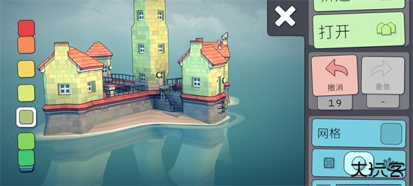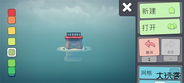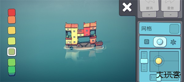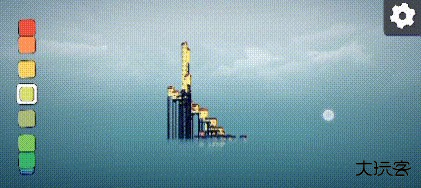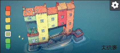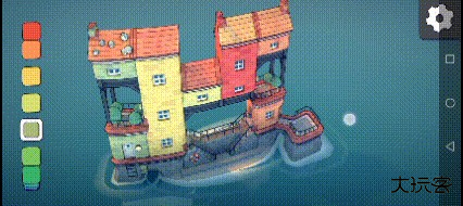 玩家们可以通过左侧的调色盘来选择自己喜欢的颜色,点击完喜欢的颜色之后,直接在屏幕上建造就会出现对应的颜色。(但是这里需要注意一点,就是地基的颜色是永远不会改变的都是红灰搭配。)