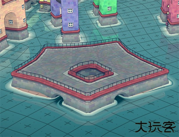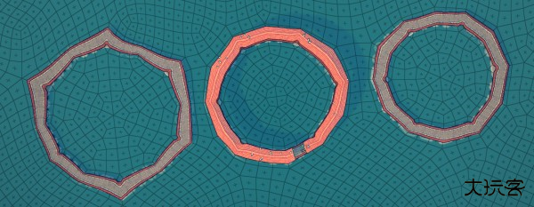 其次,相邻两个地基相连,会形成一个桥洞。如果斜着放置,怀疑形成一个较小的桥洞。