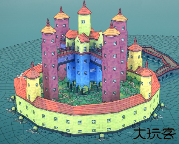 花园/田野内将一个高架部件连接到更高的建筑物上,可使一栋2个空间高度及以上的相同颜色的建筑物触发石墙。