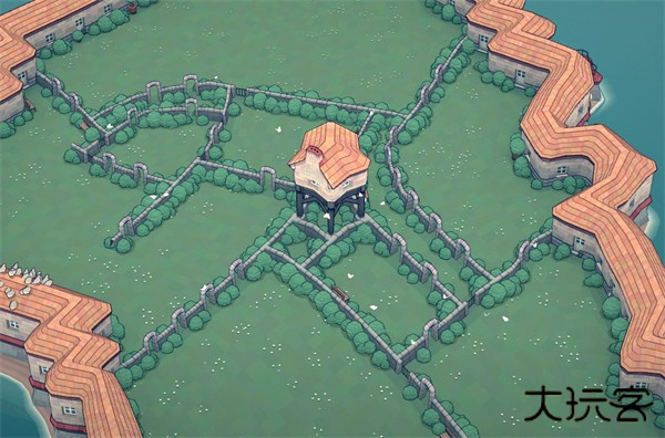 花园/田野内建造几座彼此靠近的建筑物,即可生成石墙,石墙样式取决于周围结构的形状和大小。
